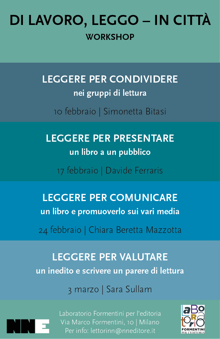 Una nuova edizione speciale dei nostri corsi "Di lavoro, leggo" in cui la redazione NNE racconterà le diverse forme e modalità di lettura che entrano in gioco nella filiera editoriale, in un weekend di lezioni frontali, laboratori, discussioni, momenti conviviali di confronto e performance.